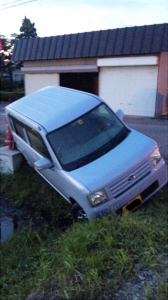 妹に車を貸したら見事にこうなりまんた。ペーパードライバーが!あぶない!ブレーキ!と言ってもペーパードライバーは焦るとアクセルを踏むのであった。勘弁してくれーorz